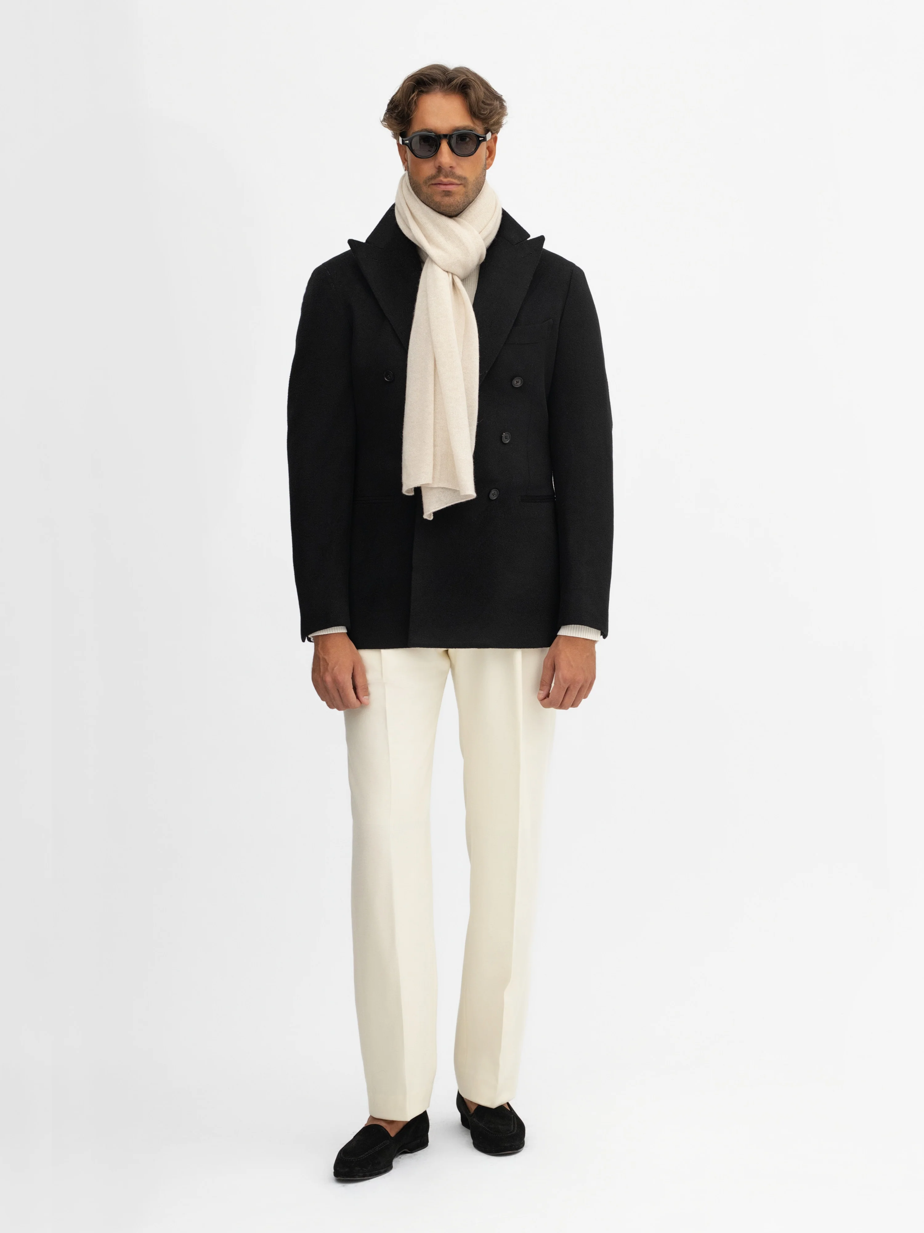 Cream Cashmere Scarf made from 100% cashmere with a 7-gauge knit construction. Soft, warm, and perfect for elevating your style in colder seasons.