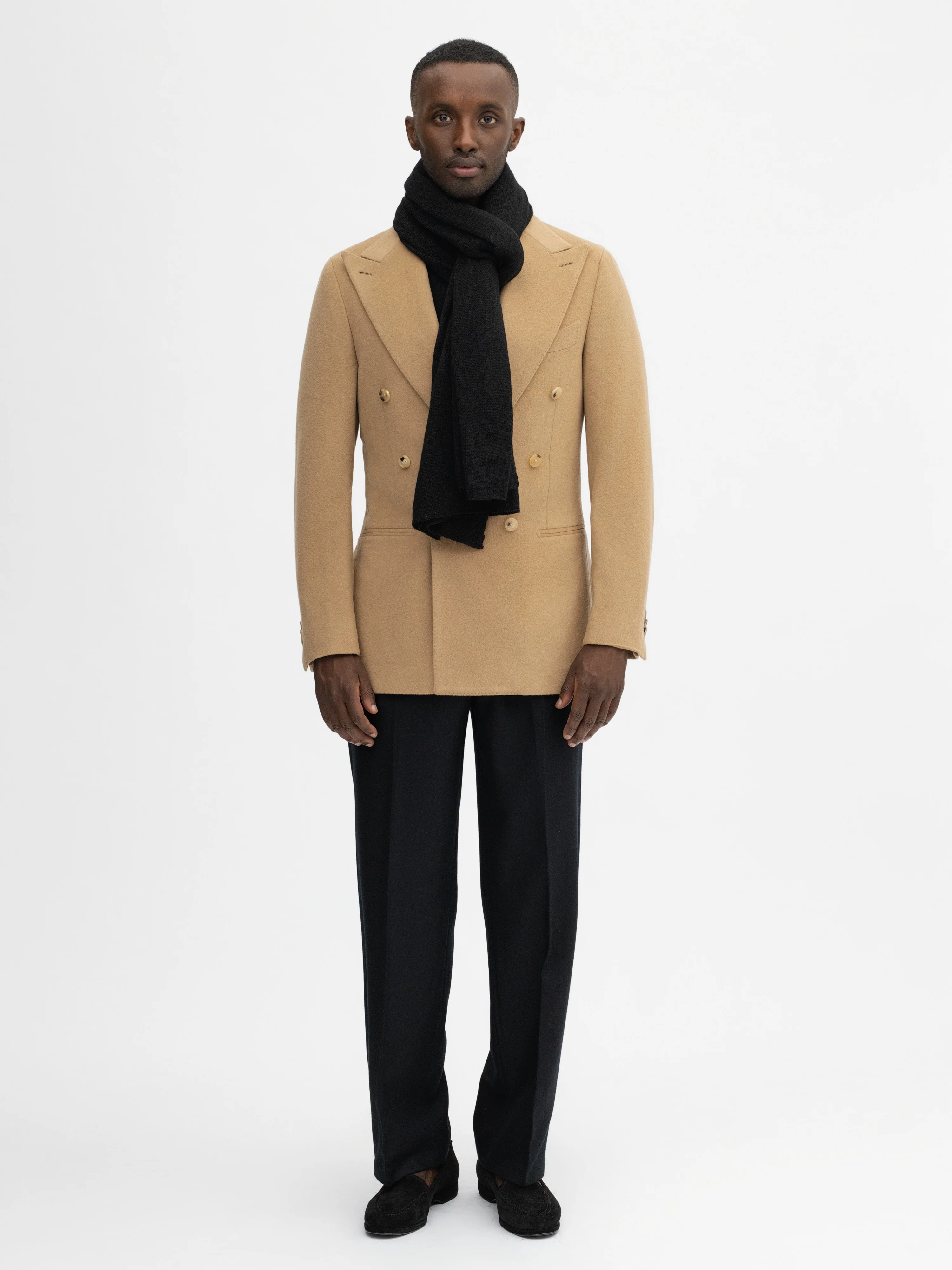 Black Cashmere Scarf made from 100% cashmere with a 7-gauge knit construction. Soft, warm, and perfect for elevating your style in colder seasons.