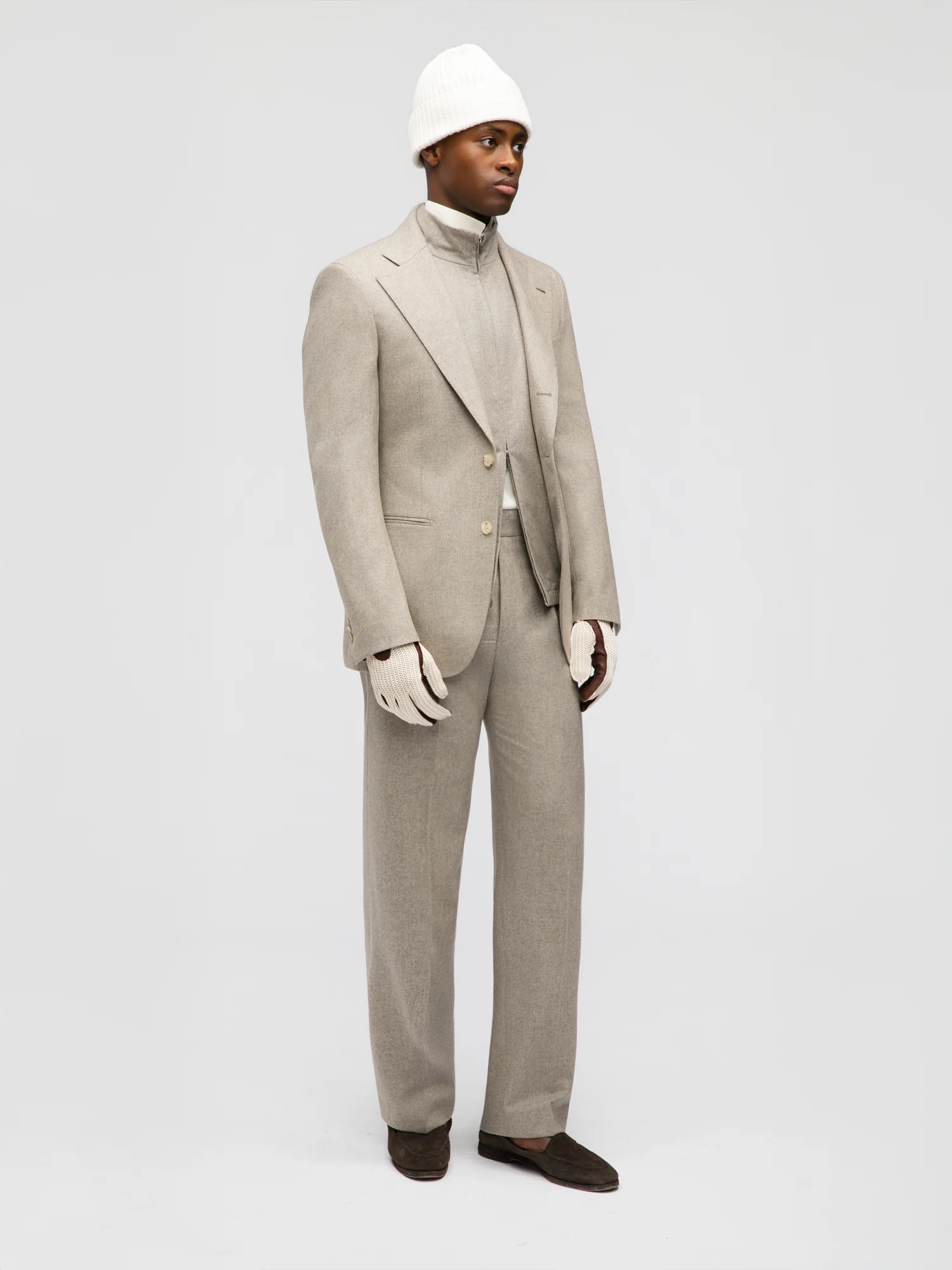 Taupe Flannel Wool Suit